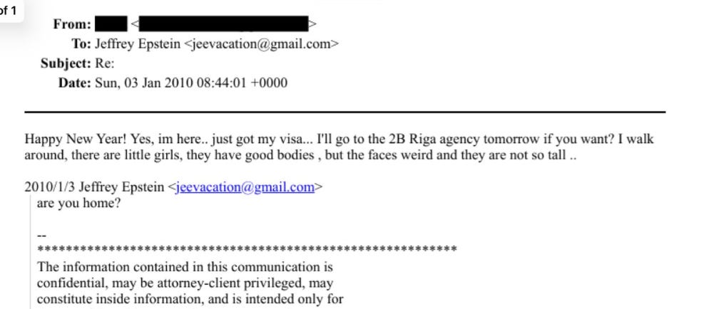 It’s clear from his emails that he was also lending these girls to others, including world leaders and businessmen who are mentioned throughout the latest tranche of documents released by the Justice Department.